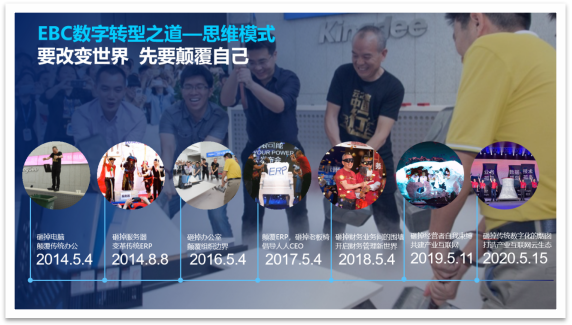 活動一開始,由金華金辰軟件有限公司副總經(jīng)理倪小紅女士開場致辭。倪總通過一張圖展示了金蝶從14年開始的轉(zhuǎn)型史,講述了金蝶公司從總裁開始自上而下的顛覆決心。